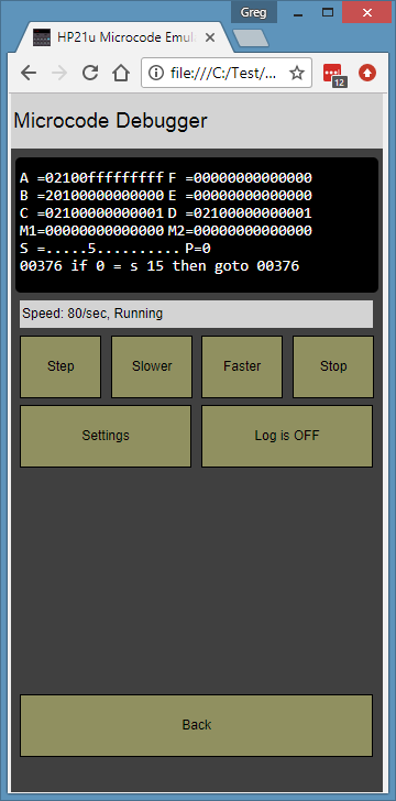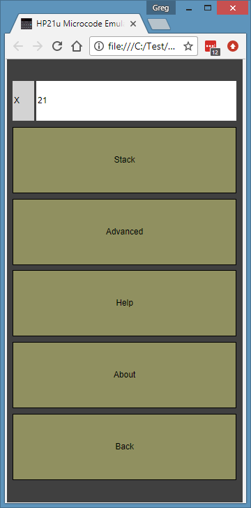 As with my other HTML5 microcode emulators, tap the display (LED digits) to bring up more options. On the hp21u it looks like:
