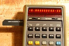 The real thing came with magnetic cards that you could save programs and data on, and later reload back into the calculator. It was amazing at the time. You could load side 1 or side 2 of a short magnetized card. If it was a long program or there was lots of data then the calculator would display “Crd” to prompt you to load the other side too.