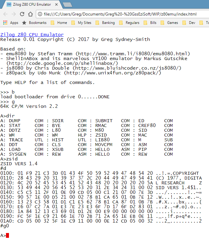 Run CP/M Z80 programs in a web browser!